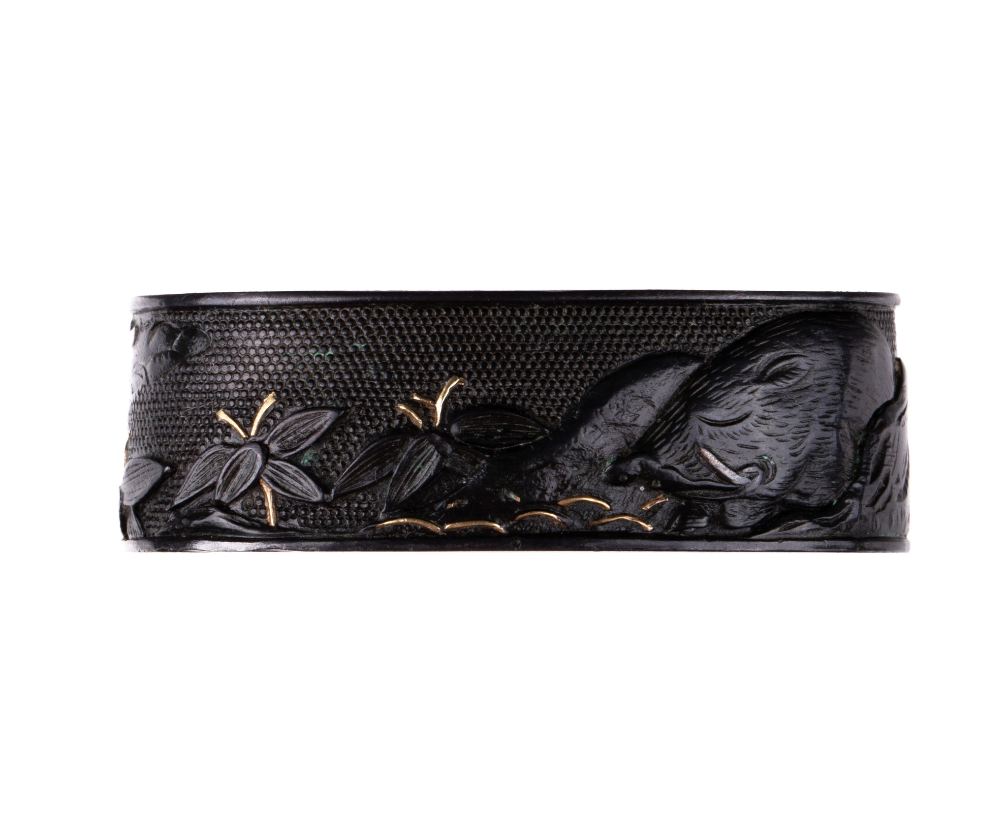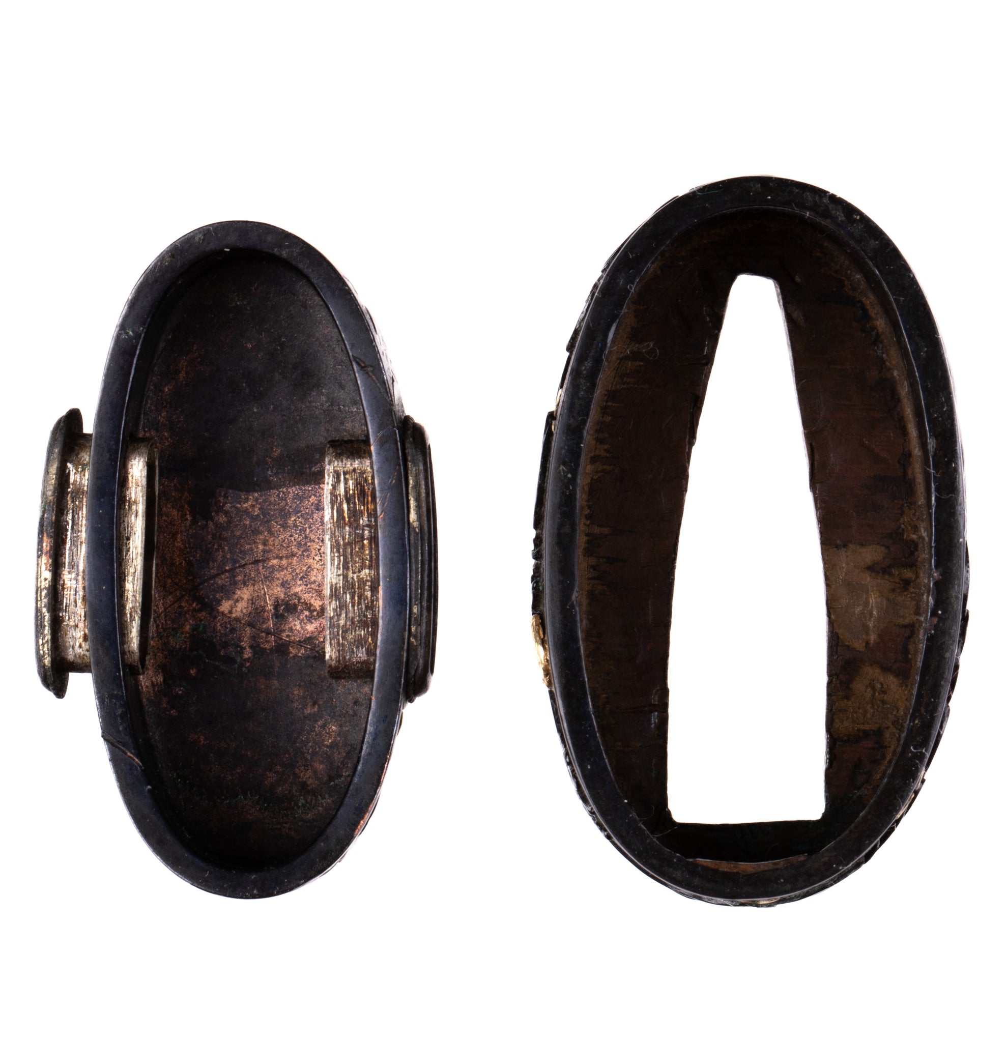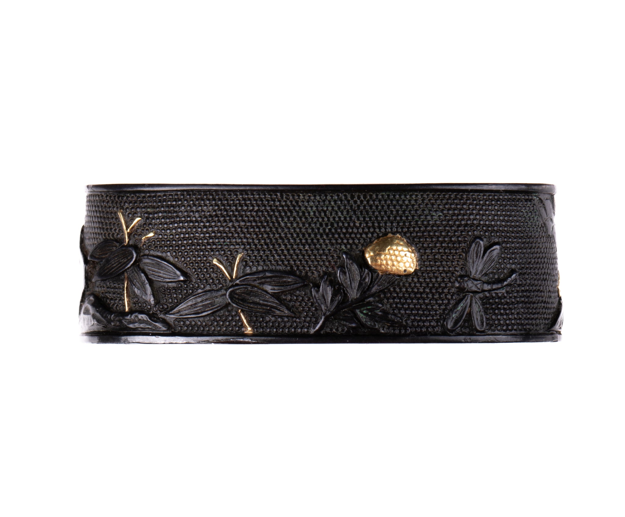 Made of high quality shakudo with inlaid gold and thick layer of gold iroe.
