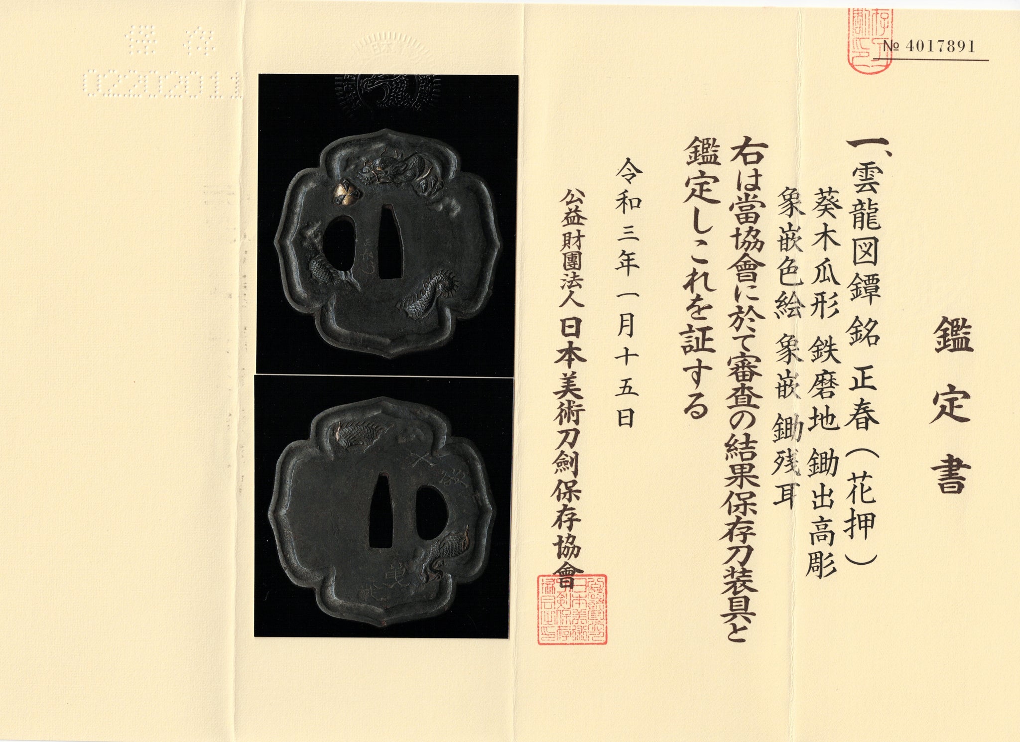Iron tsuba signed "Masaharu" with NBTHK Hozon Tosogu. I am not sure which Masaharu made this piece.