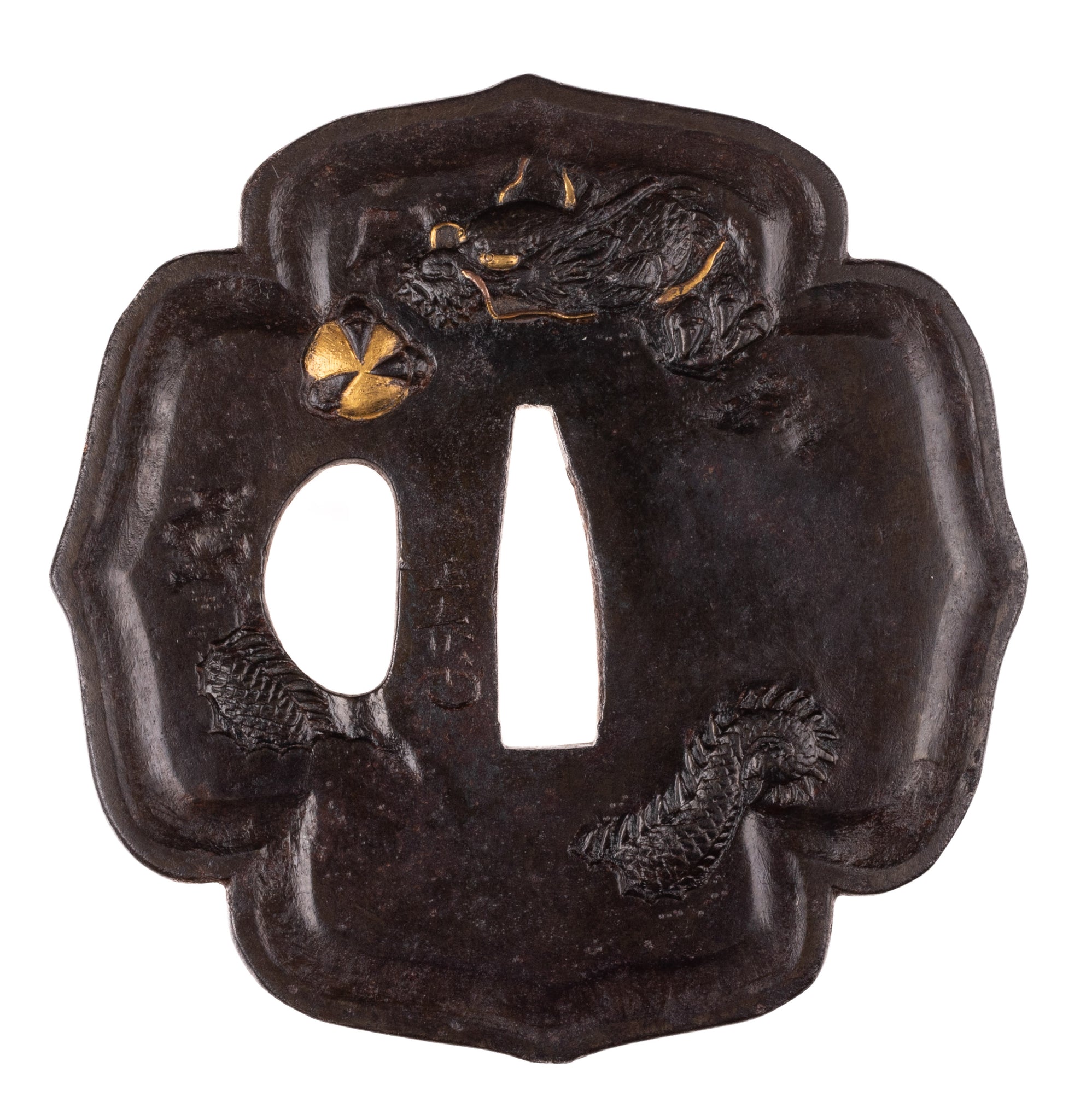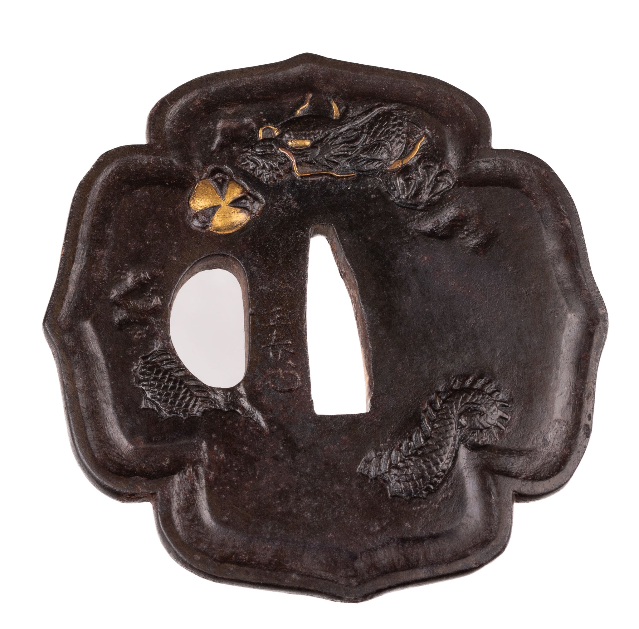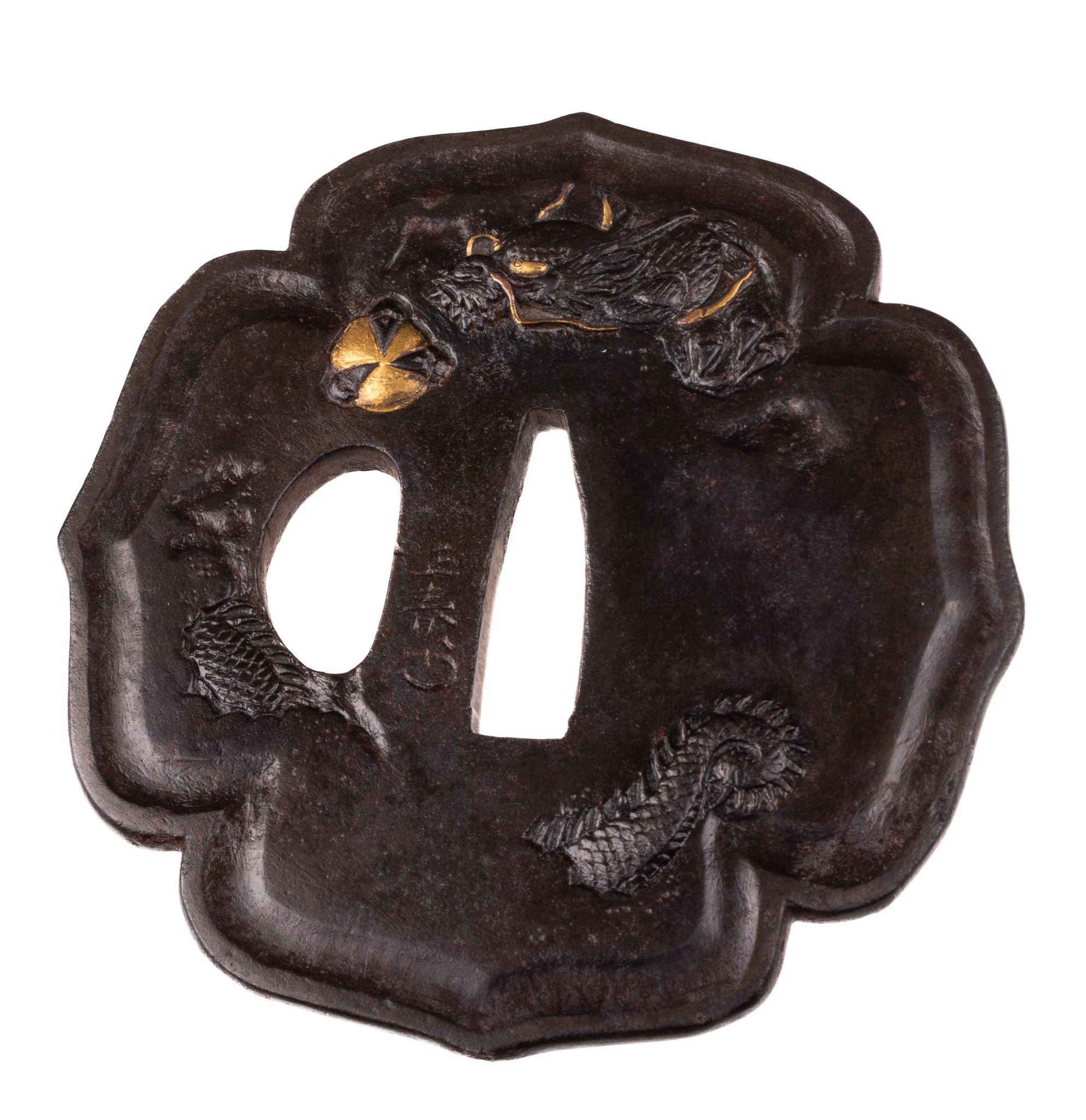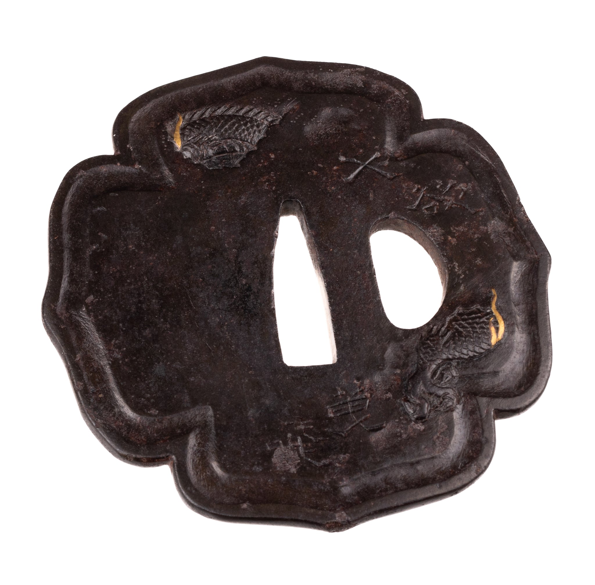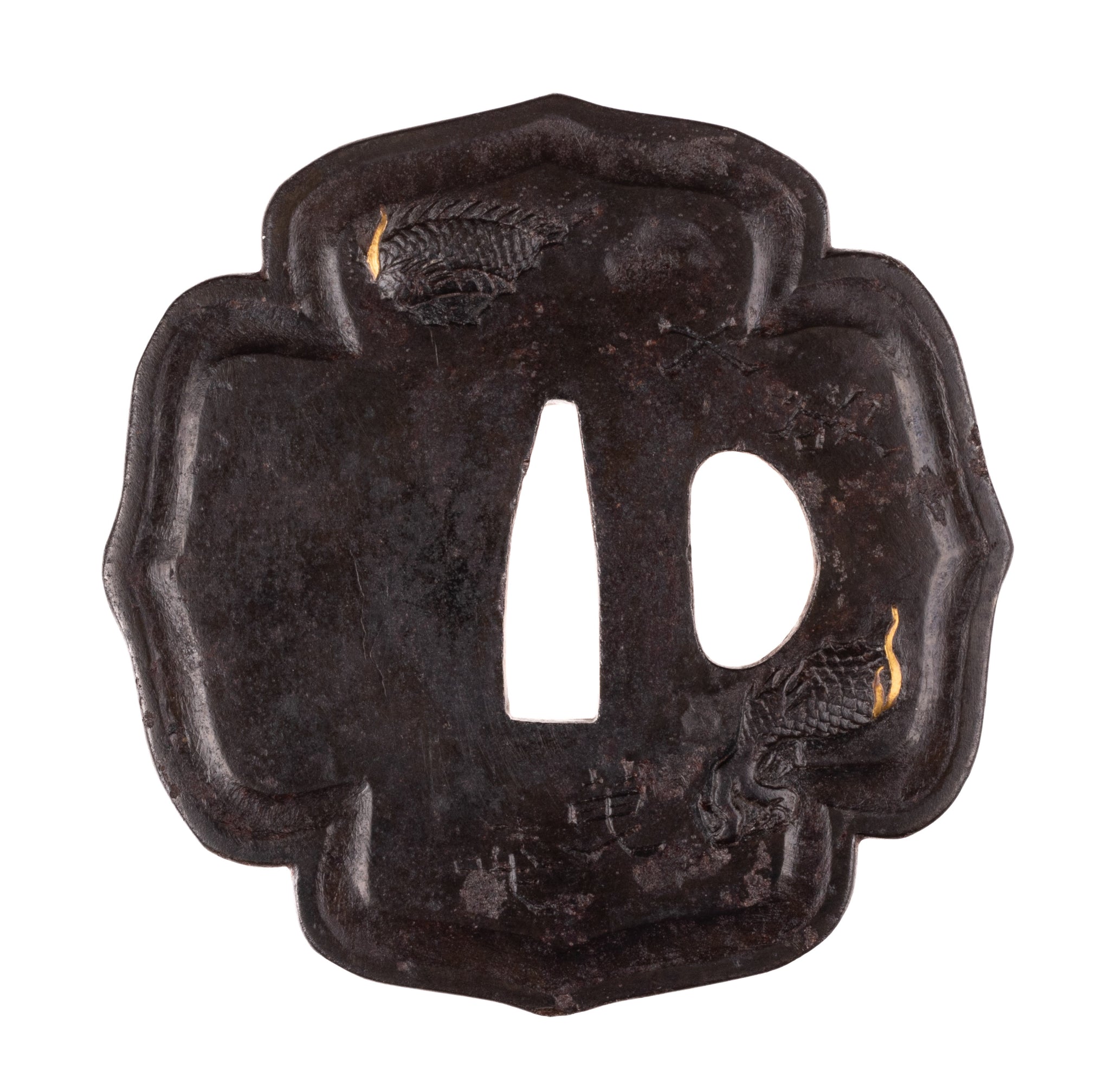This tsuba is thick and heavy with a very strong shape. It feels like something that would suit a sword practitioner more than fittings collector.